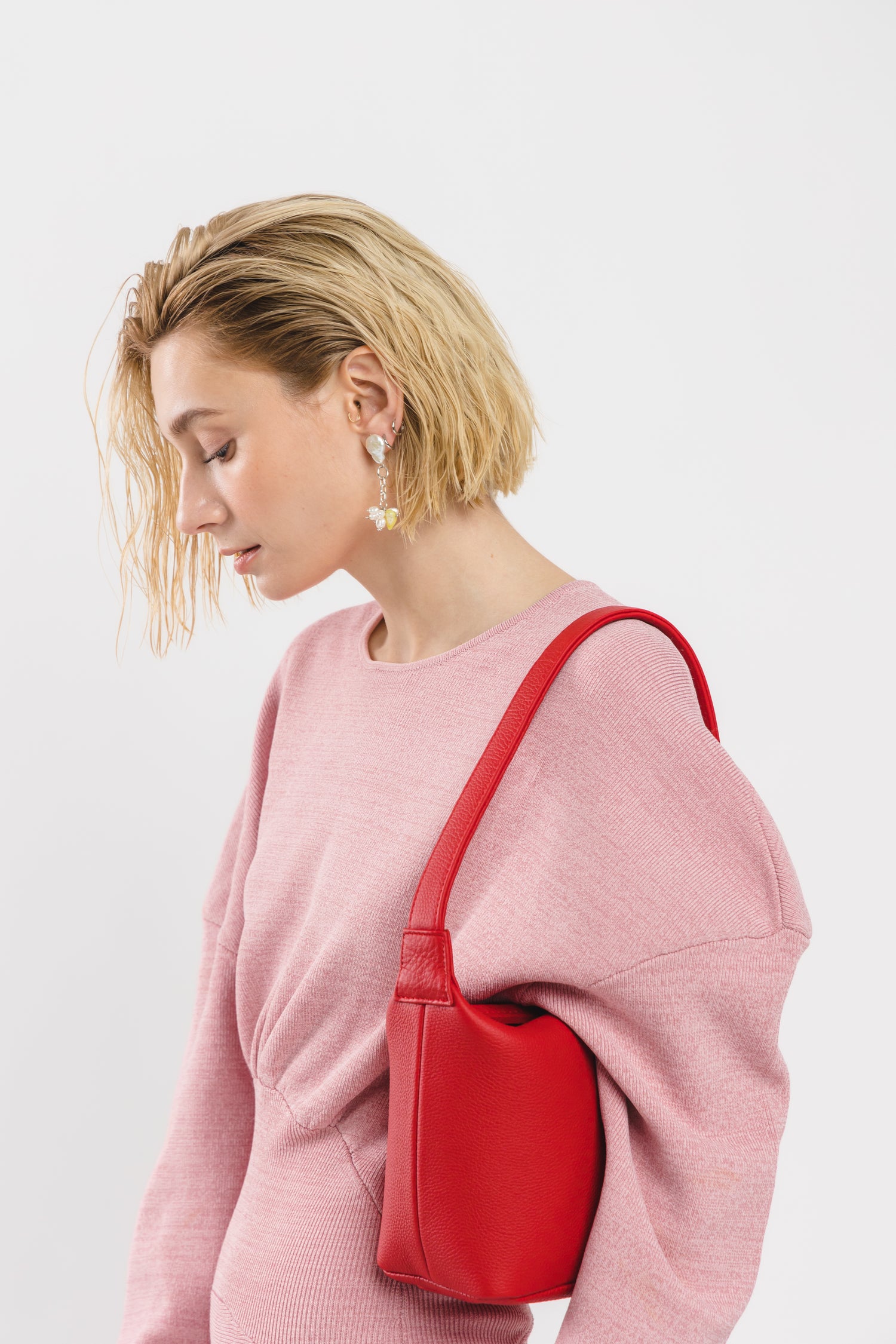 This minimal detailed shoulder bag is pillow-like, soft, and light. Functional and aesthetically colored D-ring on the side of the bag allows you to hang any small accessories or essentials.